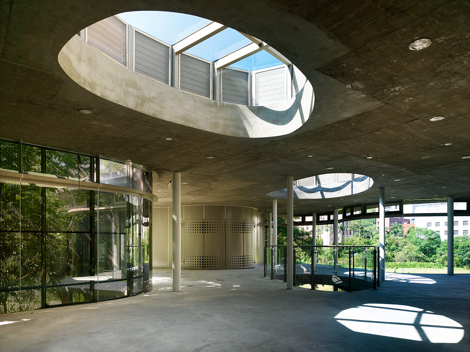 藉由牆面材料的變化及營造出雖內猶外、亦內亦外的空間感受。天井光線通達了室內大部分的空間、多層次室外綠意的引進與接觸,及浮力通風的氣流導入建物,利用光、風、景的自然元素。 讓人森在其中,亦可感知周圍自然環境並與之共存。