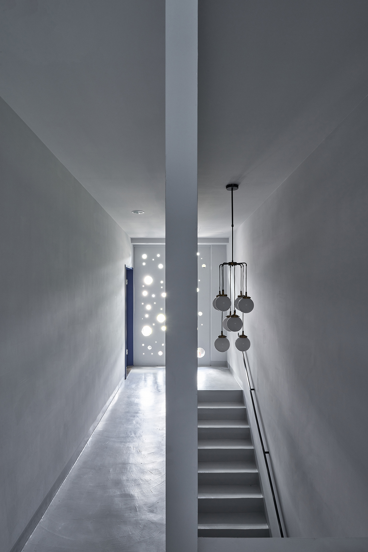 行走在直通三樓的狹長樓梯,幽暗漫長,盡頭微許的光線,如同穿越雪山隧道般,等待即將迎來蘭陽平原的第一道光而豁然開朗,伴隨著頭上的滿點星光,指引人們持續向前。