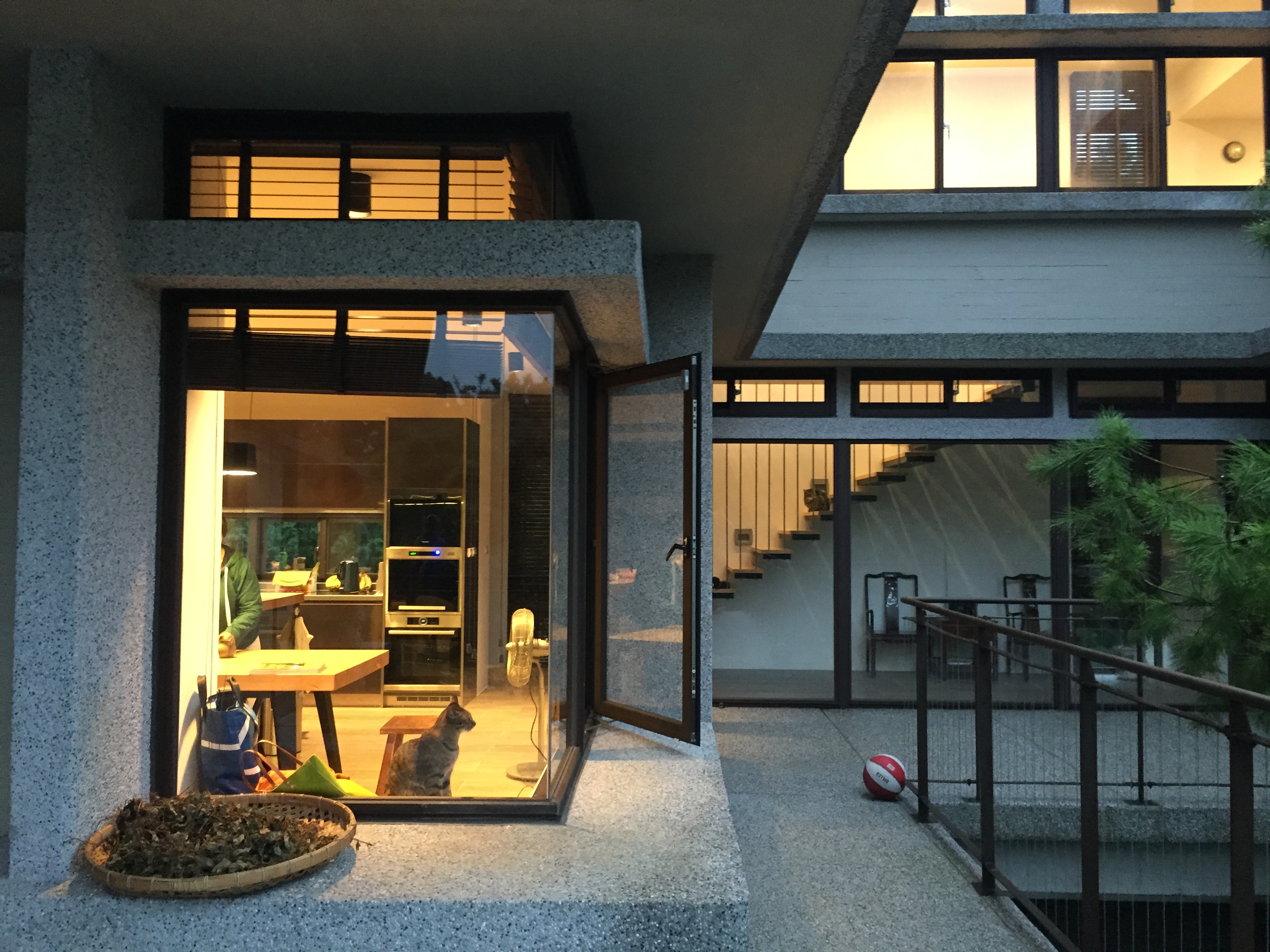 有風有景的屋頂之家,靜靜地走在每個空間的裡裡外外,;風是徐徐吹進來,視覺是延伸出去的, 於是每個空間映入眼簾的是不同的景緻, 是一棵老樹,一片竹林,也有一排松柏。