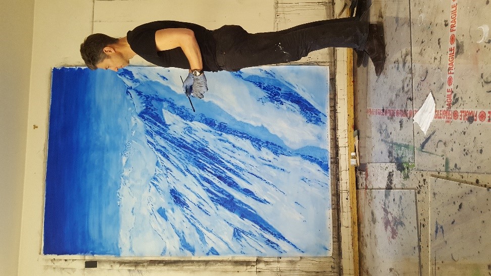 「我本來可以畫單純的風景全景圖,但這並不是我真正想做的事情。我希望的是作品能深深吸引住你,讓你沉浸其中。來吧!讓這個藍色充滿你的生命,讓你陶醉,迷失自己。」
