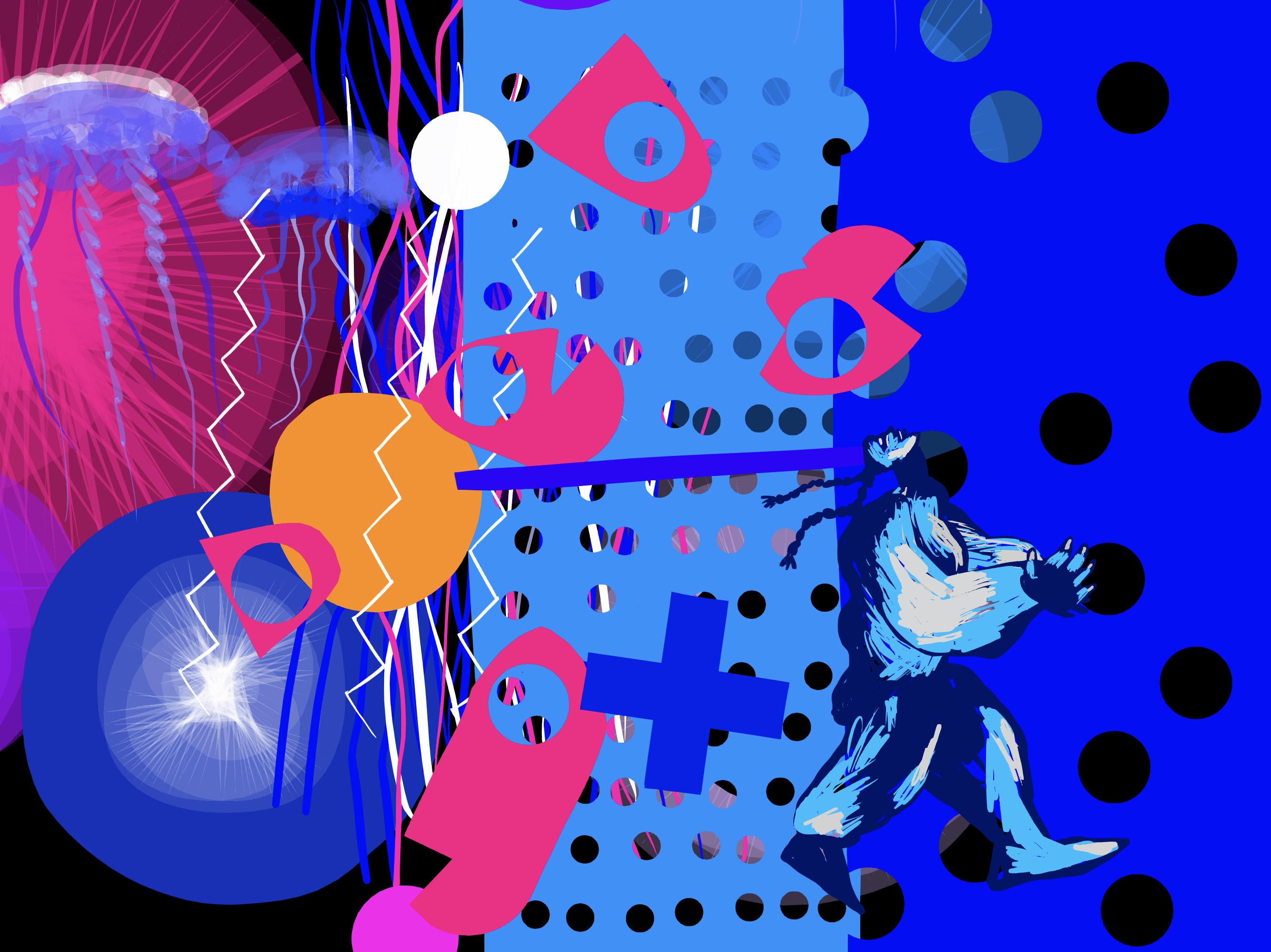 The french artist Michele Guieu is living in USA. Her art project during the lockdow is to ask every artist to make an art piece in a circle about Earth’s futur. In this screenshot of my animation I'm painting a happy balance between humans, wilderness and the forces of the universe.