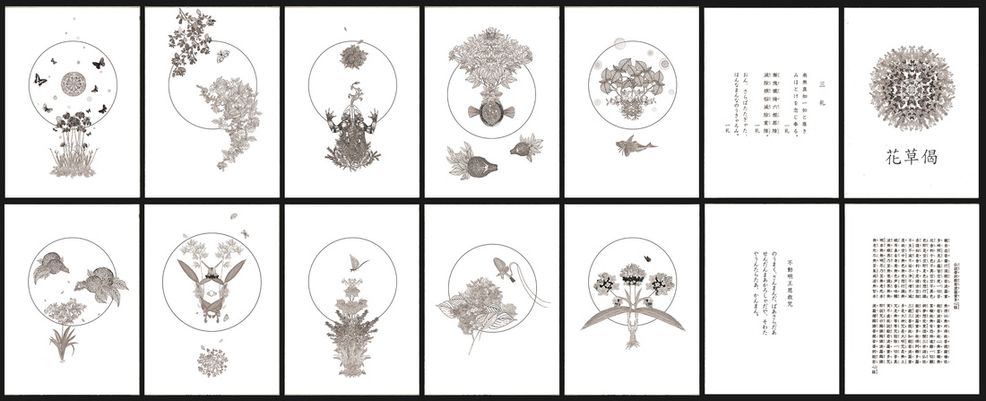 花草偈是由多變的花草組成的經文,藉由自己創作的經文與紋飾,追憶緬懷已逝的親人。