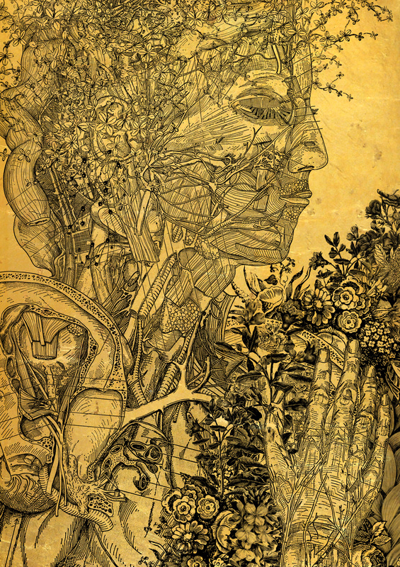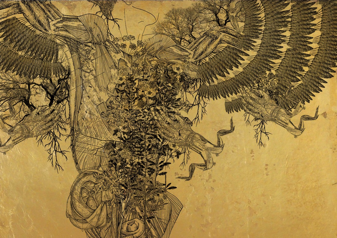 以解剖圖鑑中的頭骨和器官為主體,重新解構拼貼,來自骨骼或血管的接合,在破碎的肢體中完成另一種生命誕生,荒誕地延續了我對生命的想像。