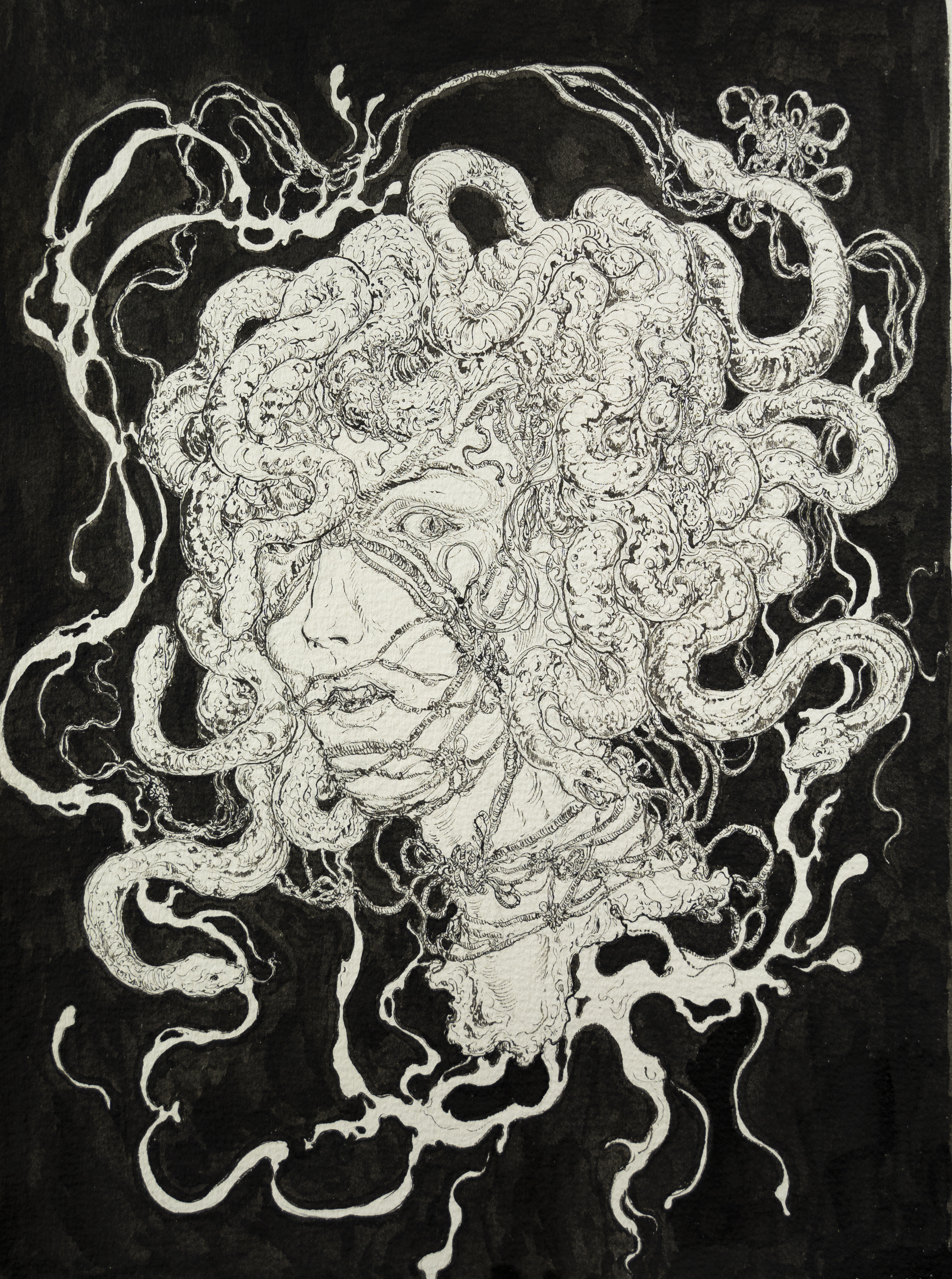 ●"Blood of Medusa 美杜莎之血", 2019, 38x28.5cm, 印地安墨水、紙