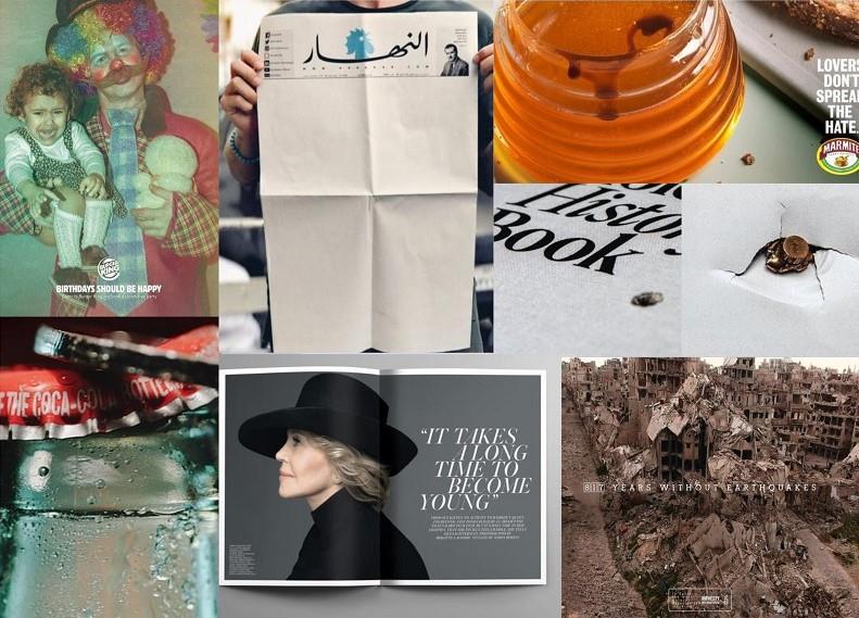 坎城國際創意節官方陸續公布了設計類、平面類、戶外類等廣告的金銀銅獎項。其中平面類獲獎作品共計32件,包括金獅獎6件,全場大獎1件。