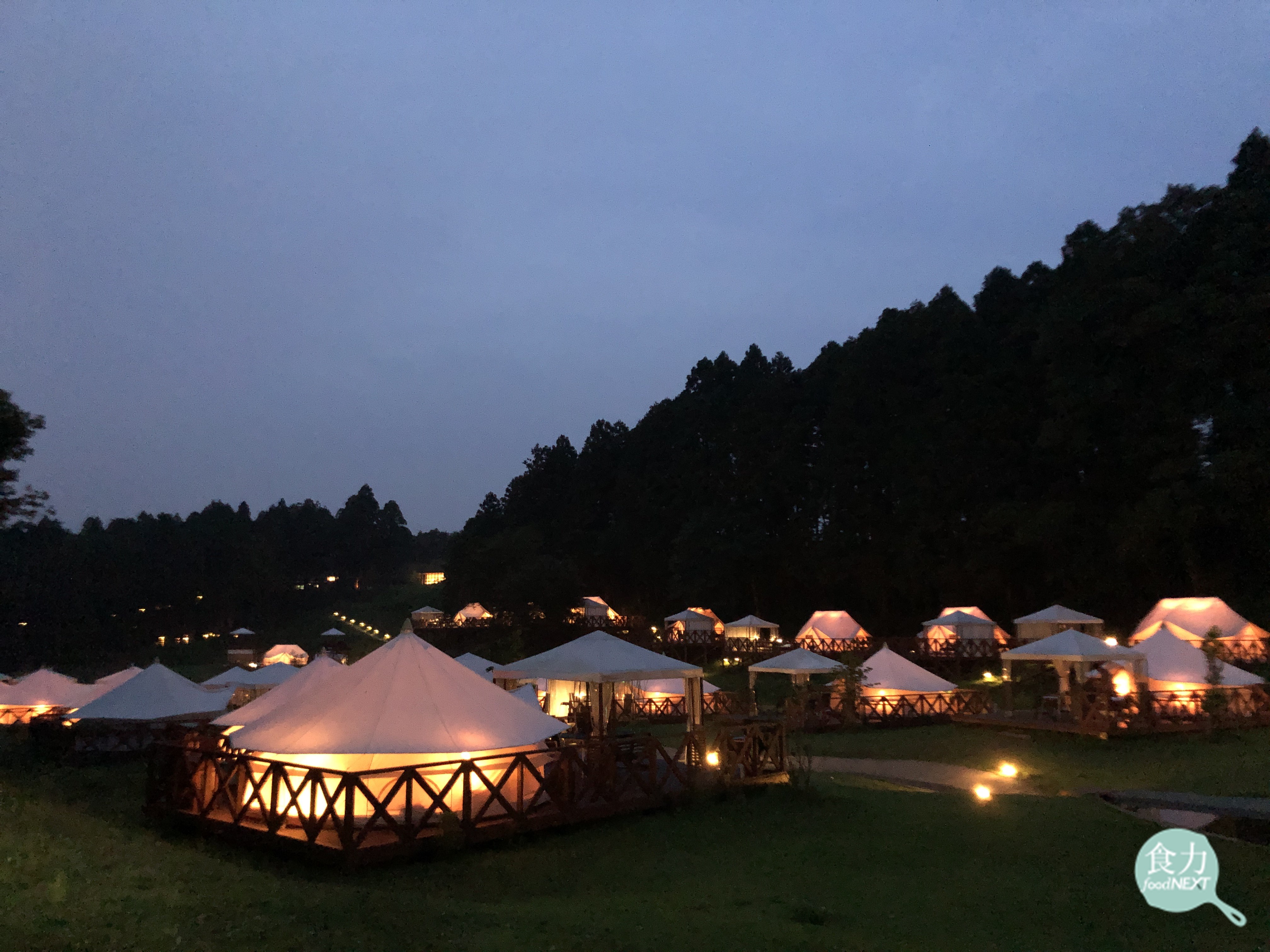 THE FARM有多種住宿房型共50間,其中座落於山林間的豪華露營區,住宿一晚附早晚餐、天然溫泉、蔬菜採收體驗等,相當搶手。(攝於THE FARM)