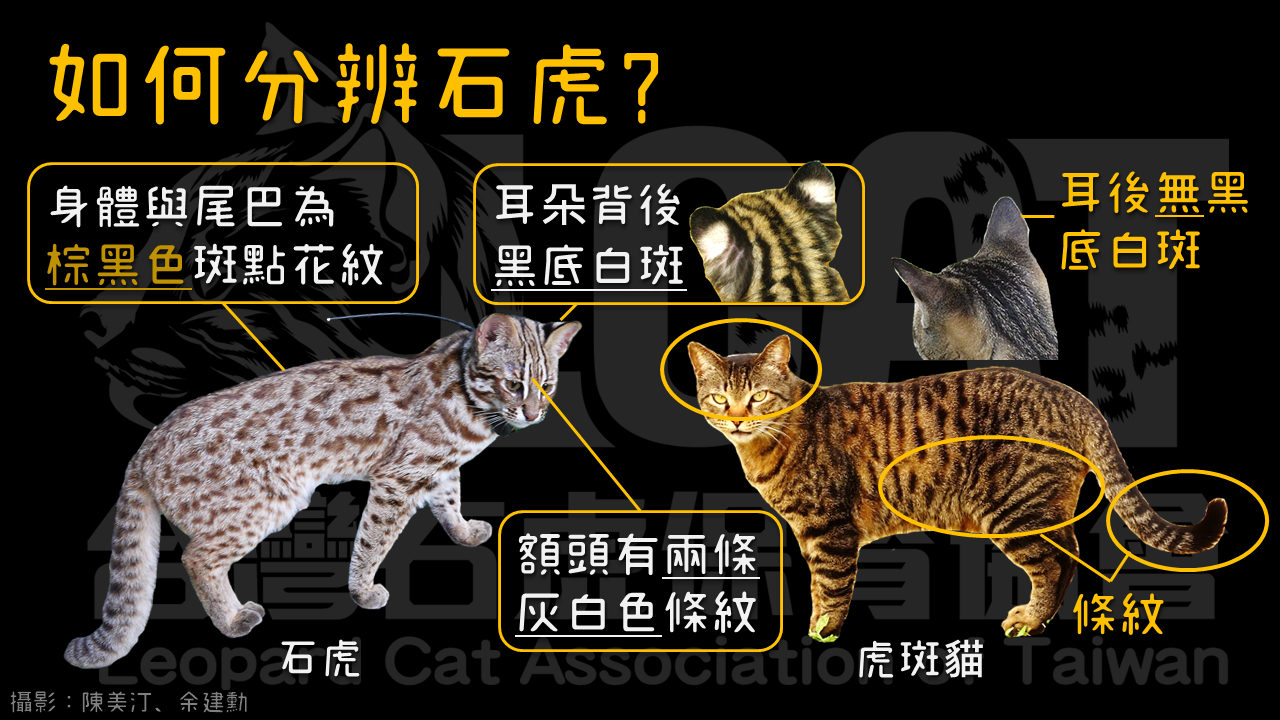 石虎是種小型貓科動物,和家貓體型十分相似,也常有人因此搞混。而石虎有三大特點:前額到兩眼間有兩條「白色條紋」、耳朵後面有「黑底白斑」,身體和尾巴都有「棕黑色的斑點花紋」,下筆前只要多多對照石虎的資料就能畫得更唯妙唯肖啦!