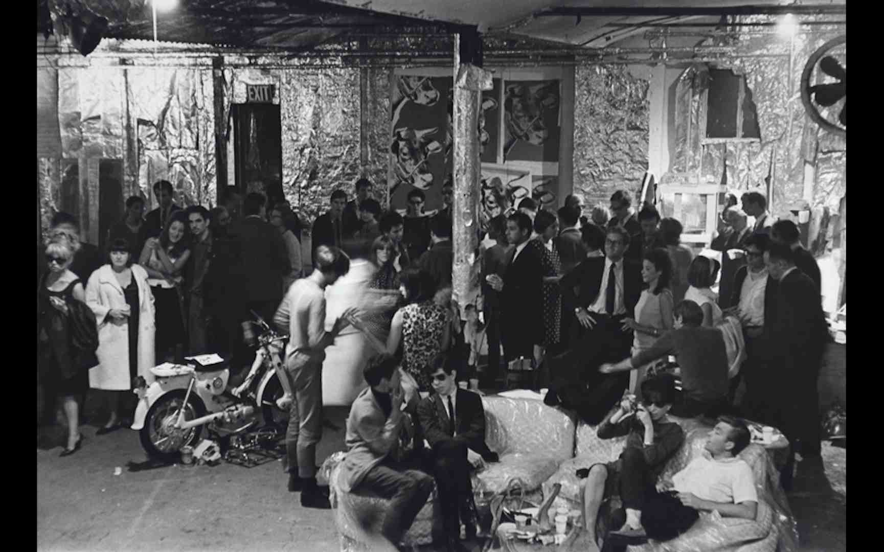 來到沃荷的工作室,當然不能錯過晚上熱鬧的派對【圖4】。沃荷說:「我們整晚都在開派對,而且整個下午都在準備派對,反正就是在工廠裡閒晃。」[6] 1965年夏天,電影製片人帕爾斯基(Lester Persky)在這裡舉辦了一場名為「50個最漂亮的人」(The Fifty Most Beautiful People)的派對,來賓涵括了藝術家、「沃荷的超級巨星」、電影製片、搖滾樂手、社會名流。在派對中,藝術界的朋友站在角落討論沃荷的近作,而沃荷則是在遠處與朋友聊天,並看著整個派對的進行。工作室的派對看似是一場場的狂歡,但實質上,則具有維持沃荷在紐約時尚、次文化、藝術圈被熱烈談論的功能。