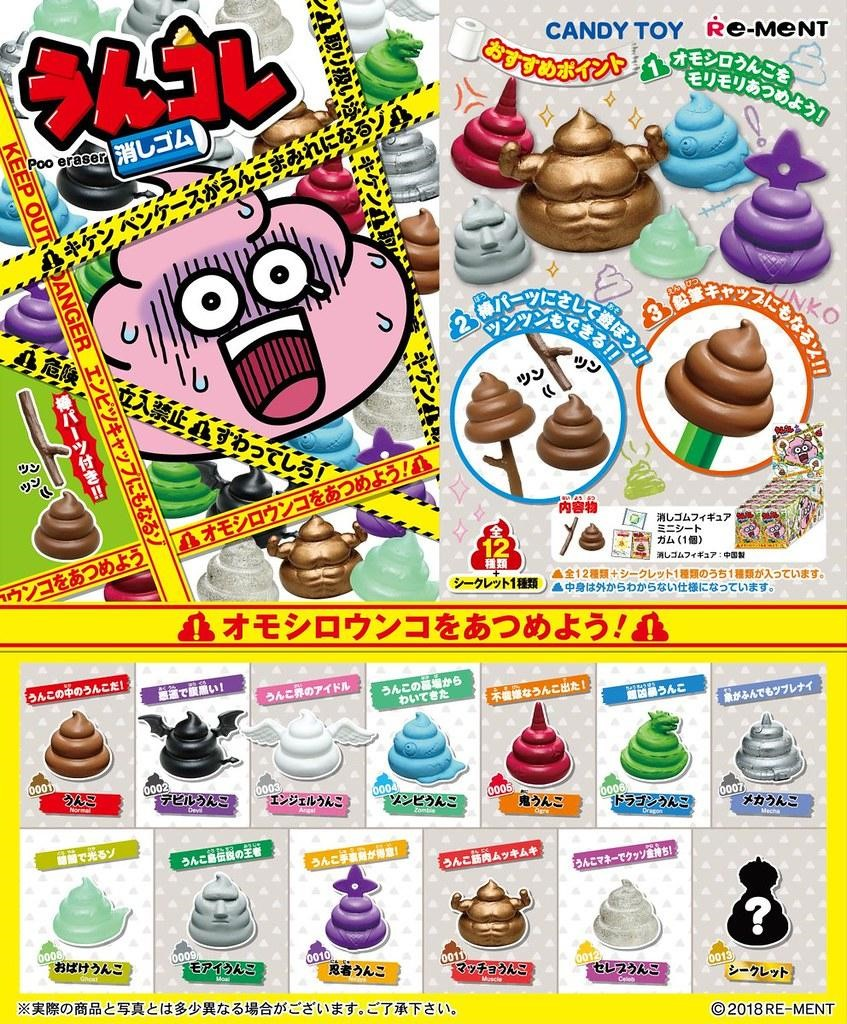 零嘴吃到一半時,看到「大便」會有什麼反應?RE-MENT 公司(株式会社リーメント)推出原創系列的大便橡皮擦,不但能用裡面附的「樹枝」來玩大便戳戳樂,也可以收集一套來嚇嚇辦公室同事!