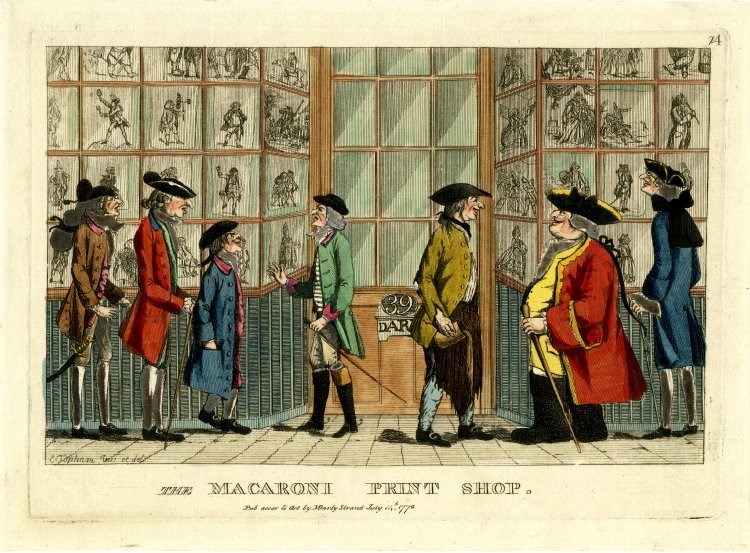 Edward Topham,The Macaroni Print Shop(通心粉版畫店), published by Matthew Darly, 1772. Print on paper, 17.7×24.9cm. British Museum, London. 圖版來源:The Trustees of the British Museum。