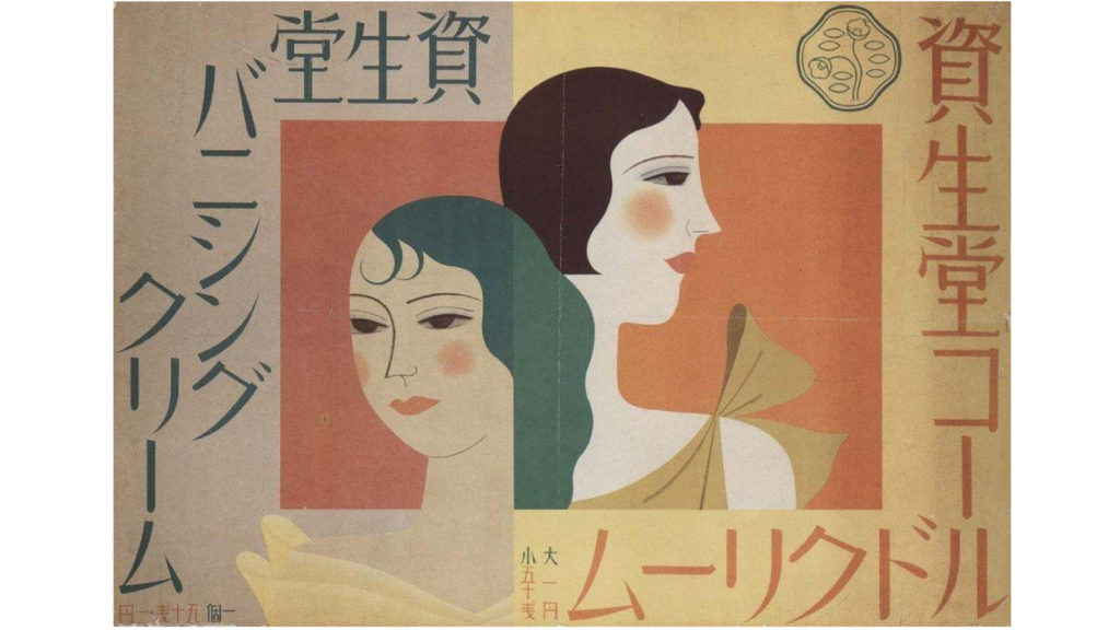 1927 年的冷霜以及雪花膏廣告中,「資生堂」的品牌識別已相當鮮明。圖片來源:故事,寫給所有人的歷史,〈資生堂銷售術─20世紀初的化妝品廣告與設計(一):導論〉。