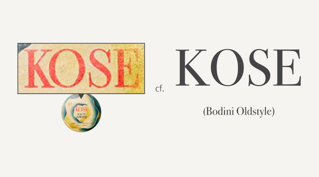 襯線是依附於筆畫起收端點的細線,由於古羅馬石刻的大寫字母中已可見到此特徵,因此襯線體又被稱作羅馬體。此類的字型相當多,“KOSE” 的設計類似縮過字間距離的 Bodini Oldstyle 字型,在優雅之餘富含簡潔感,正能貼合幹練、明快的女性上班族形象。
