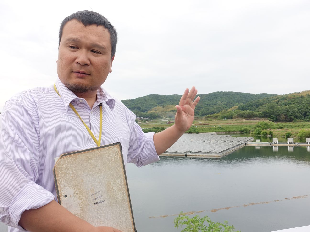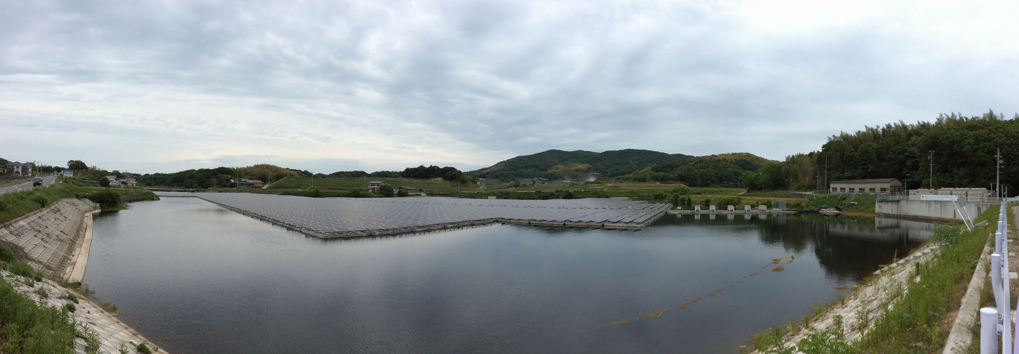 今年(2019)5月,拜訪龍谷大學政策學部的隔日,我們一行人一早從京都驅車前往兵庫縣洲本市。抵達時已是中午過後,車子在一處彎道旁緩緩停下,下車後眼前是一片開闊如鏡,映照山影天光的大水池。站在埤塘前揮手迎接我們的是高橋壱科長,他任職於洲本市企劃情報部,負責「域學合作」相關業務。隨後就由高橋科長向我們介紹洲本市與龍谷大學合作的經過,還有太陽能發電事業的營運情況。