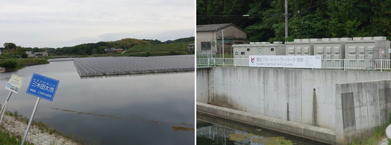 高橋科長說,三木田大池的太陽能發電事業竣工於2017年,每年發電量約207萬千瓦時(kWh),可供給570戶家庭一年用電,主導這項事業的是「PS洲本株式會社」。前一天在龍谷大學聽取簡報時,白石克孝教授即表明他是資本額一百萬元的 PS洲本株式會社的負責人,不過PS洲本株式會社並非營利公司,而是社會企業。他自己雖然擔任負責人,卻屬於無給職,僅公司的職員有薪水,藉此降低企業本身的必要支出,讓賣電盈餘多數能回饋洲本市。這也是因為受到同在政策學部任教,提倡社會創業且創立社會企業「PLUS SOCIAL」的深尾昌峰教授影響,而選擇以社會企業的形式投入此一「域學合作」案。