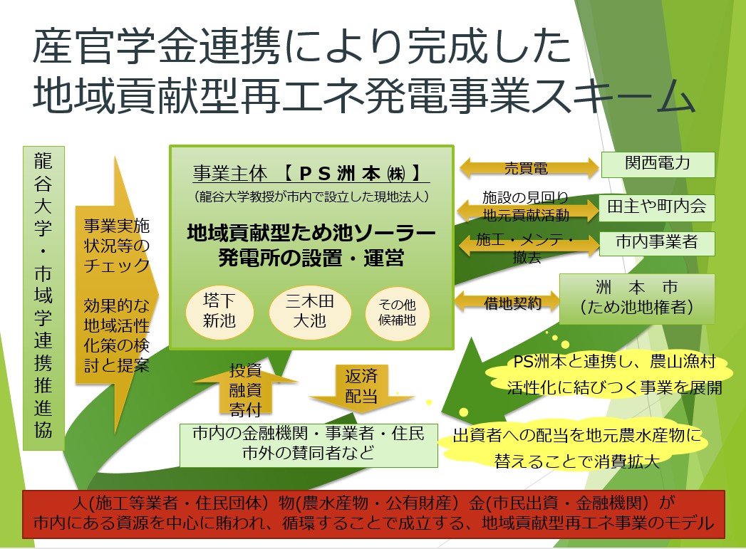 ▲圖:龍谷大學與洲本市合作的「地域貢獻型再生能源事業」關係圖。(龍谷大學政策學部提供)