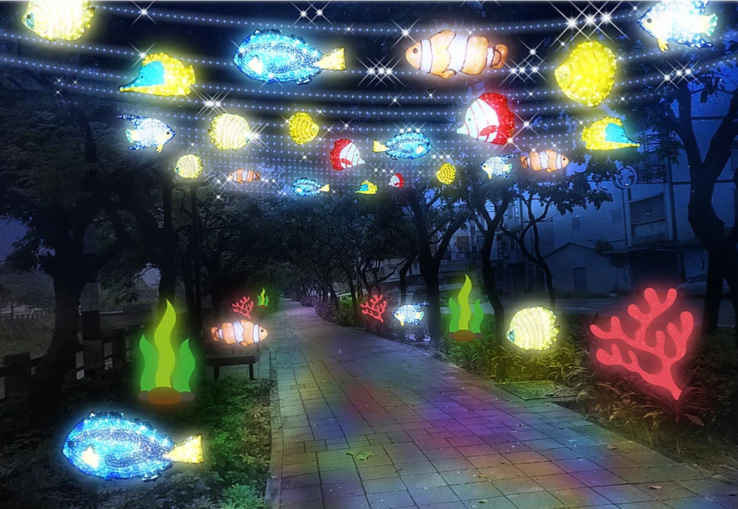 海洋區裡有夢幻閃耀的水藍色鯨魚、彷彿進入海洋世界的熱帶魚群以及優雅搖曳的水母,絕對是超吸睛的拍照熱點!