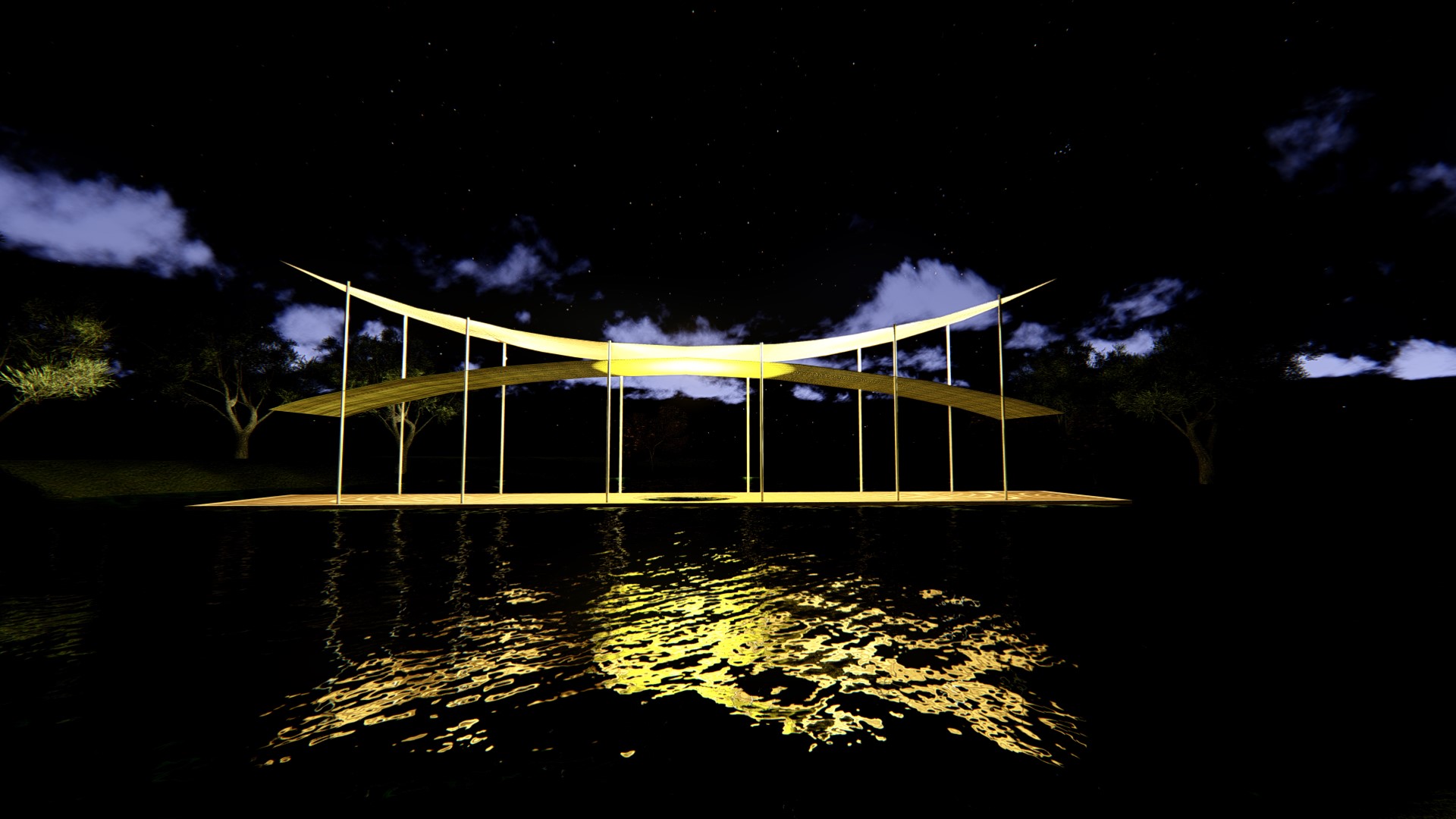 擅於利用大量重複性質材創作的台灣藝術家游文富,用大量的竹編創作〈海波浪〉述說海的故事。生命源於海洋,編織出的巨型波浪,向量性地由湖邊往陸地延伸,線性到面性的隨風蔓延到岸邊,從山裡走到海岸,從遙遠的海岸走進月津港,這裏是港非港,在晝夜交替、橫縱交織間,展現更多如夢似幻的人文故事。