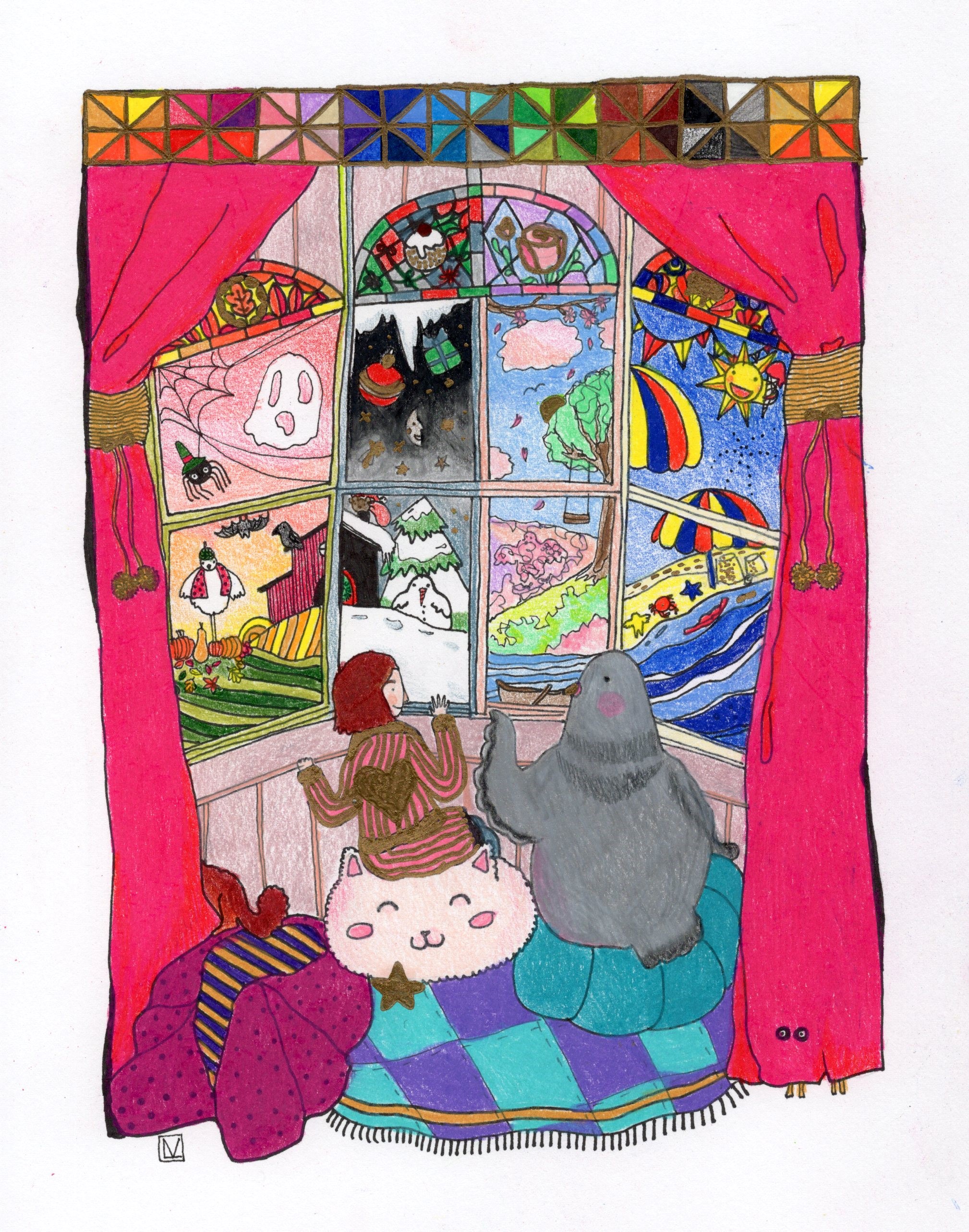 That is why, 2018 ending, I decided to draw the little things that made up the past year and that I hope would mark 2019 as well. The little things, the ones we cannot really list, that we cannot achieve or own : the first snow in winter, the blooming spring, the vibrant colours of summer and the cozy feeling of autumn. Some years are less spectacular than others, achievements are smaller and successes less numerous. But, be patient and be kind because the biggest changes are subtler. They cannot be listed, achieved or owned.