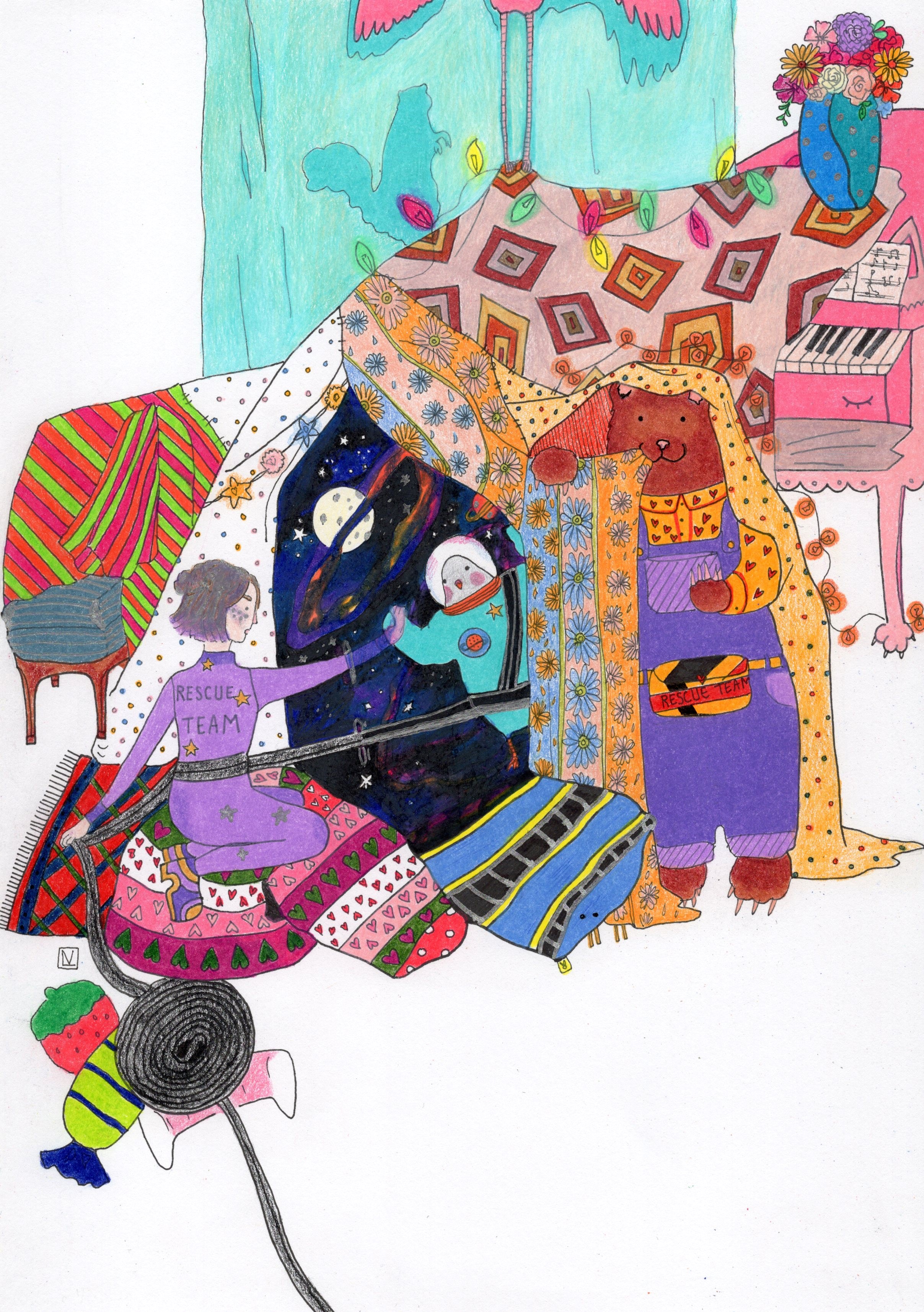 Nothing is quite ordinary in Lulu & Popo’s playroom. Fort Galaxy is the cosmic place they go to when they have a bad day: there they are free to think, sulk, scream and cry. But they can always count on their friends to pull them out of the darkness.