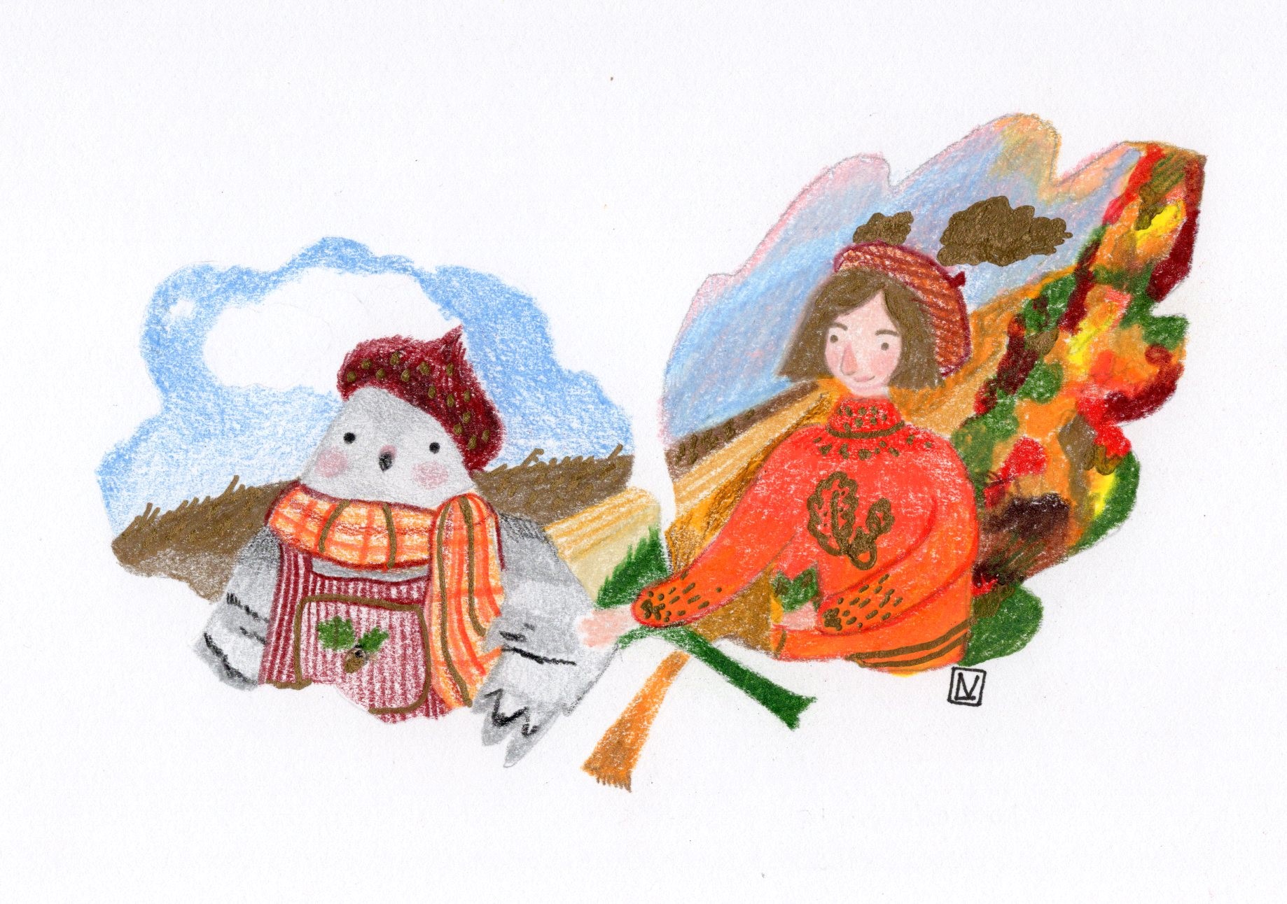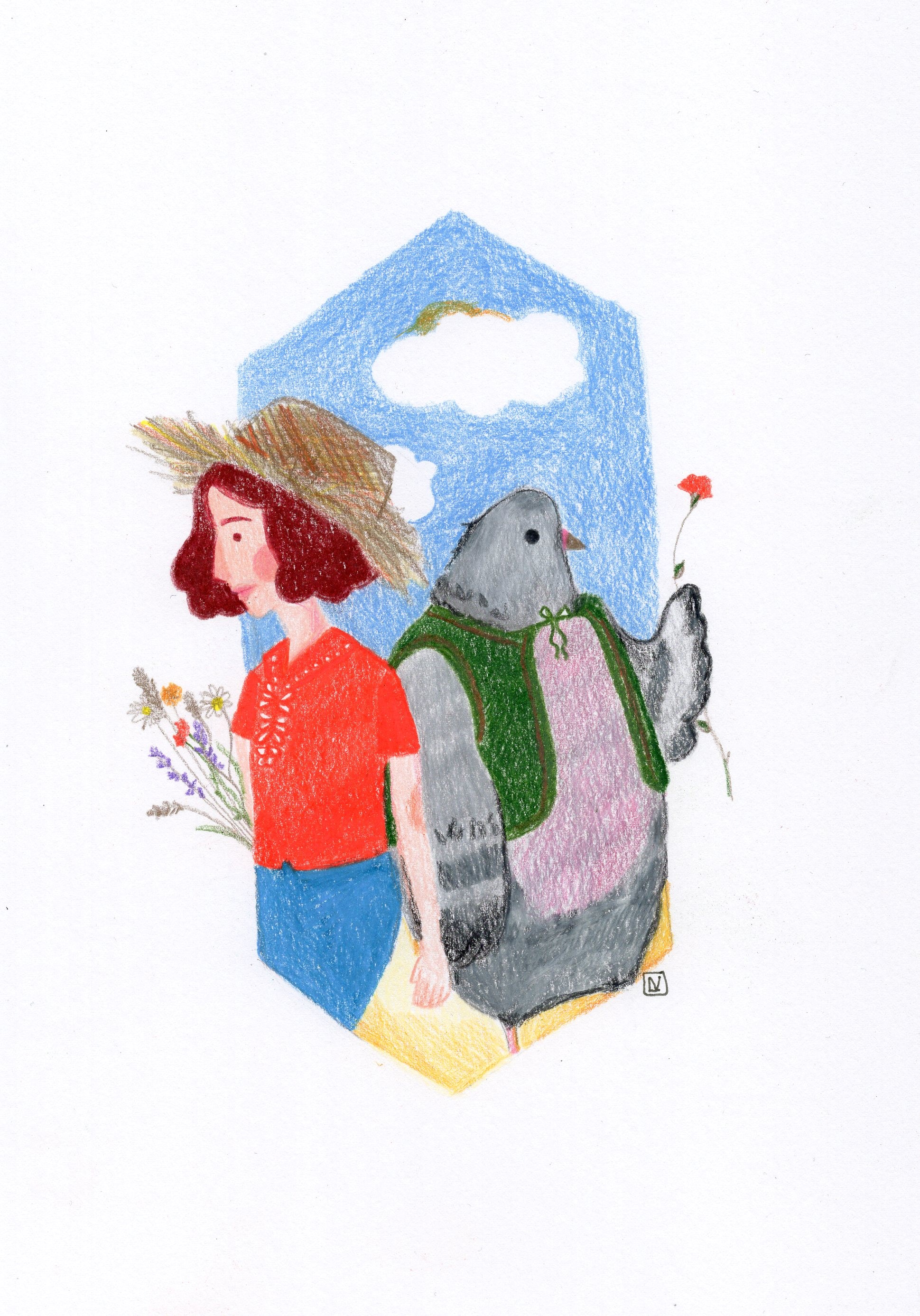 Living in Paris looks exciting and glamorous, but as I grow older I realise how much I crave nature. It looks like the city mouse has turned into a country mouse... Any occasion to visit green and wild landscapes is celebrated and cherished. But on the days where I am stuck in my urban life, I escape through my drawings and go on imaginary strolls with my dear pigeon. Each season brings its unique feel, we walk until we are tired and come back as happy as can be.