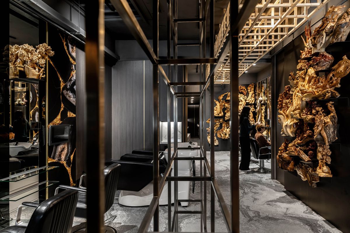 我從小學習國畫,因此在進行室內設計時,便相當自然的將國畫的語彙透過設計表達在空間中,無論私人住宅或商業空間都是如此。回到剛才我所說的髮廊,這個案子除了我自己的創意之外,業主也給了我很大的支持,例如他運來500件木雕,告訴我可以隨意運用,我告訴業主這些木雕雖然本身是藝術品,但是在我眼中就只是設計元素而已,所以我選擇用抽離自己的方式來看待它們,不抱持任何感情,單純視為螺絲釘或角料之類的物品,然後用鋸子將其中100件木雕全部鋸開,重新排列組合,變成另一種嶄新的藝術表達型態,於是人與空間從此擁有與過往截然不同的對話關係。