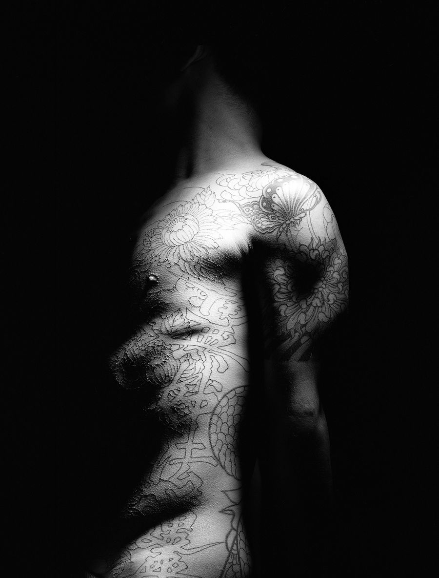 除了行為藝術,我也熱愛攝影,目前我的作品正在高雄美術館展出,名為《紋身紀實》,其中許多的照片是我在30年前拍攝的黑社會大哥身上的刺青圖案,一直以來我都把人體當成雕塑來看待,所以我的相機所呈現出來的各種身體樣貌絲毫沒有任何色情成分存在,只有美學的純粹體現,這種思考角度無疑也是道的另一種展現型態吧。
