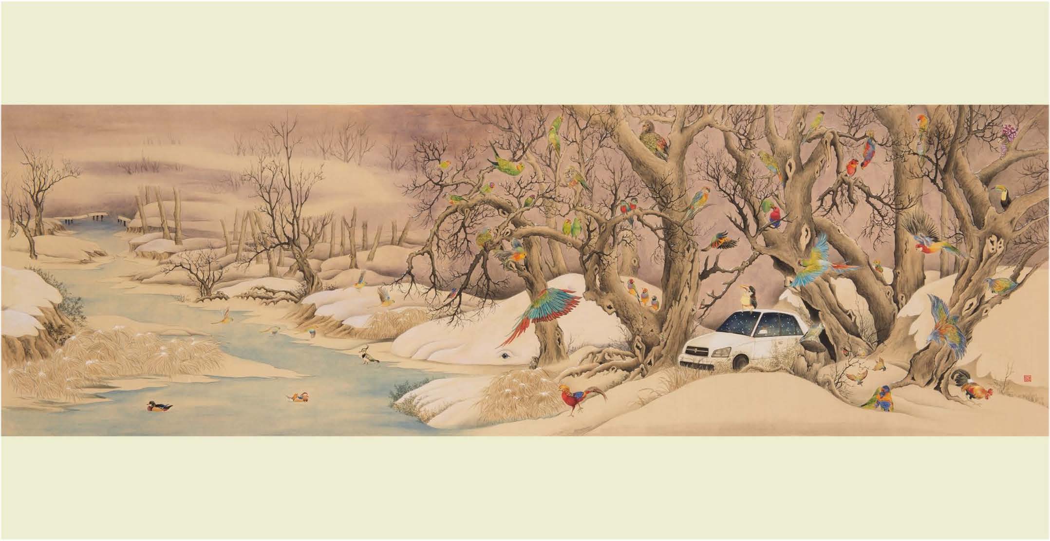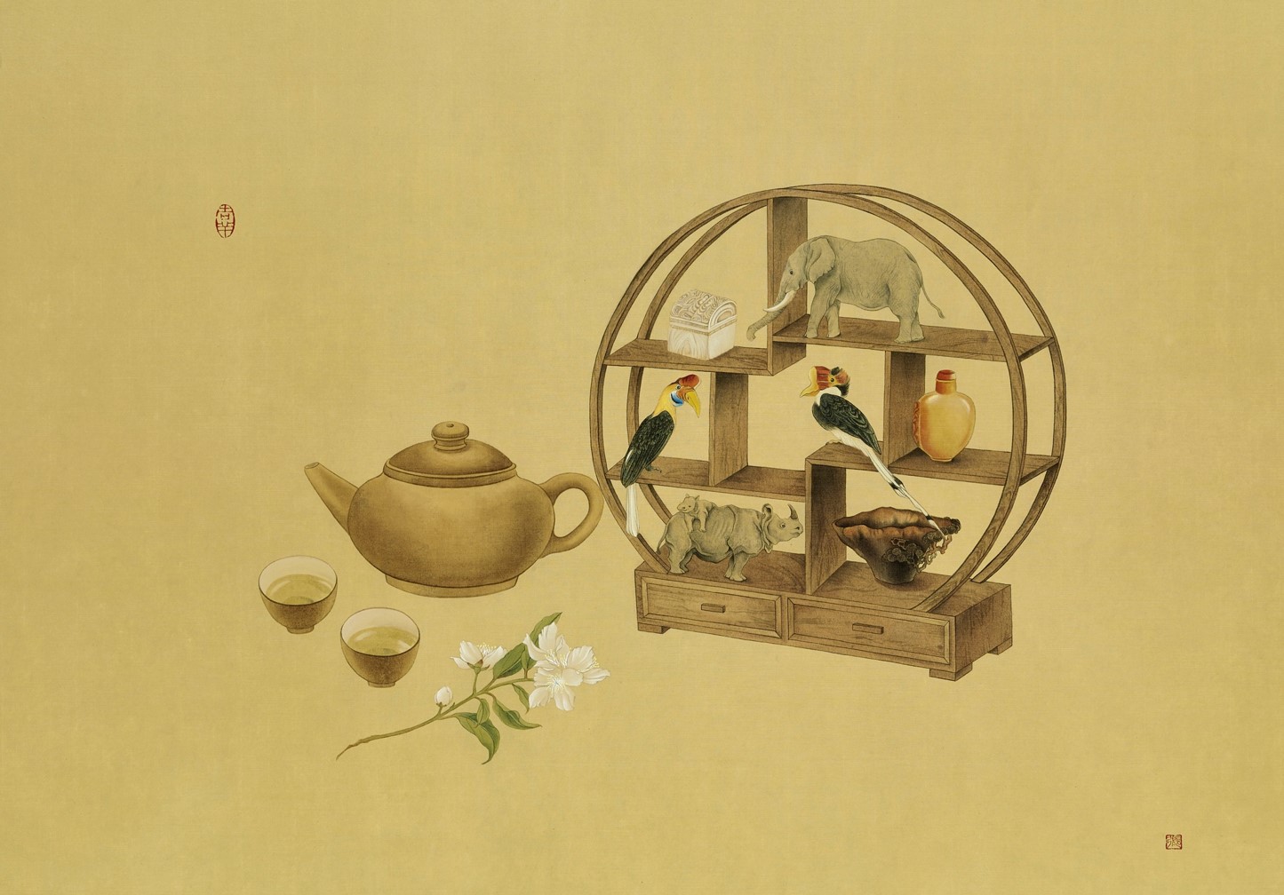 中國藝術史上的工筆花鳥總以細緻工整的技法描繪珍禽異獸,以象徵古時皇公貴族的炫富獵奇心理、進貢帝王的吉祥祝賀之意,也因此具東方寫實主義的工筆花鳥畫,要求栩栩如生的細節,亦要求宮廷畫匠對素描、線條繪製、渲染等技法的專注與精練。