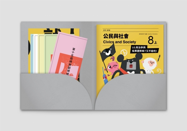 公民課本一向是翻開內頁文謅謅,設計團隊將文字做出區隔,使學生們更方便抓住重點。臺灣吧認為年輕人對於公民參與的積極度不高。這次以資料夾方式呈現,並將選票夾入其中。透過這些具體的附件,再也不需憑空想像,增加了不少真實感,更能快速學習了解。