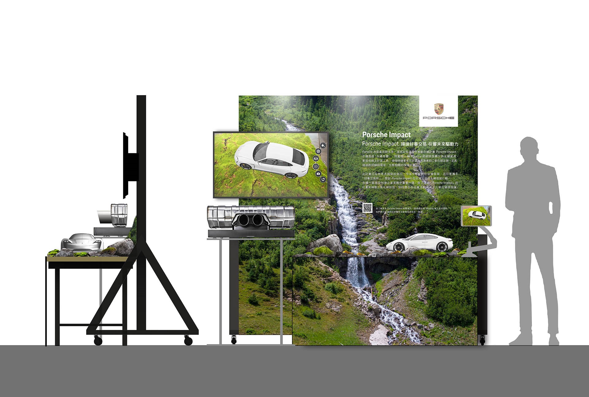 現場陳列,以經典Porsche 911 GT3排氣尾段打造音響系統結合AR,來「釋放地球的新聲」