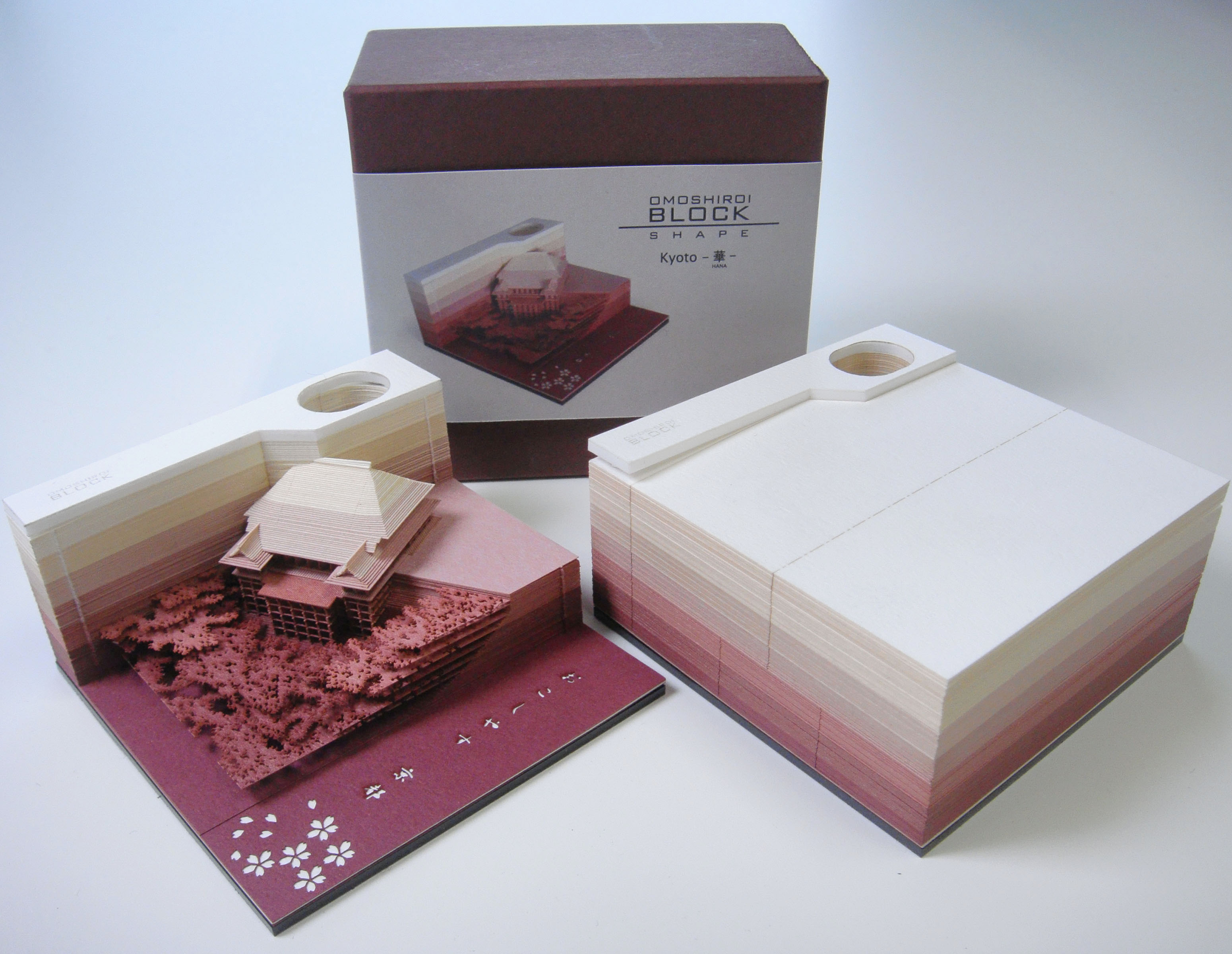 2018年亞洲設計大獎(DFA)優異大獎得主之一的OMOSHIROI BLOCK系列,是以日本清水寺等一系列建築所設計的絕美「紙雕便條紙」。近年以堪稱「全球最美的便條紙」之姿,席捲全球熱愛文具的文具控們。