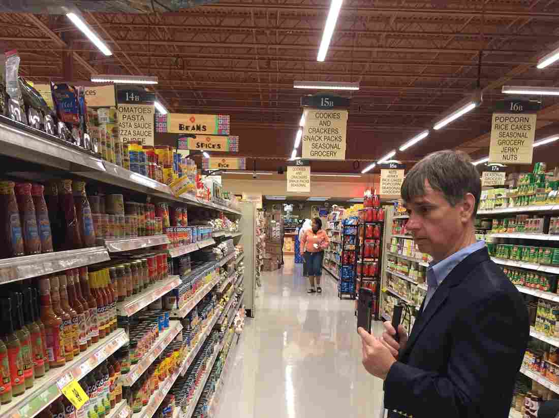 ▲一名居住在水牛城的盲人Gary Wagner,藉由應用程序「Aria」在超市中尋找辣醬。(圖片來源:NPR)