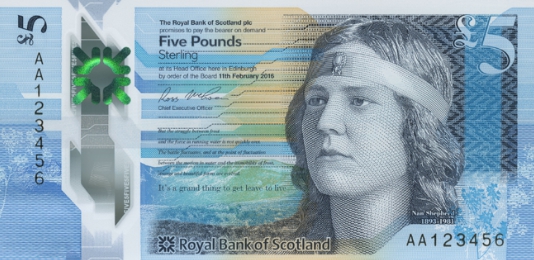 蘇格蘭皇家銀行2016 年時展開了一項名為The people's money的計畫,亦即向社會大眾徵集紙鈔的設計想法,透過集思廣益的方式來決定貨幣的設計概念,最後交由O Street設計工作室操刀製作而成,過程中也請了許多繪畫、攝影及防偽專家參與。