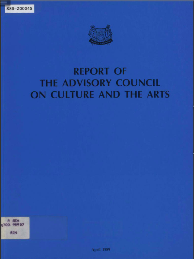 2. Advisory Council on Culture and the Arts. Report of Advisory Council on Culture and the Arts. Singapore: Advisory Council on Culture and the Arts, 1989.