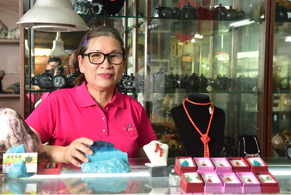 來到石藝大街的尾端,竟有一處玉石加工工作室進駐於此。這裡是「吉寶珍藝品」與「王牌工作室」合夥之處,主要的玉石藝品都是自產自銷。