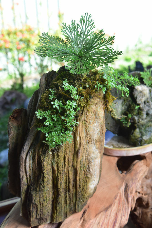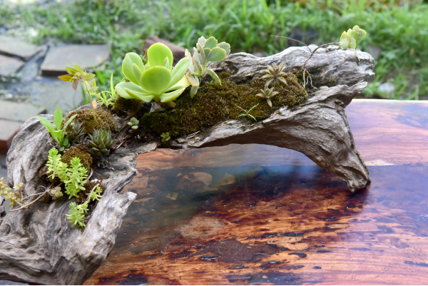 最近他開始接觸漂流木,將他人不要的棄木用來創作,放上幾株多肉植物,就成為一個個天然獨特的花器作品。他分享的神情,就像小孩子發現寶藏一樣的興奮與快樂。