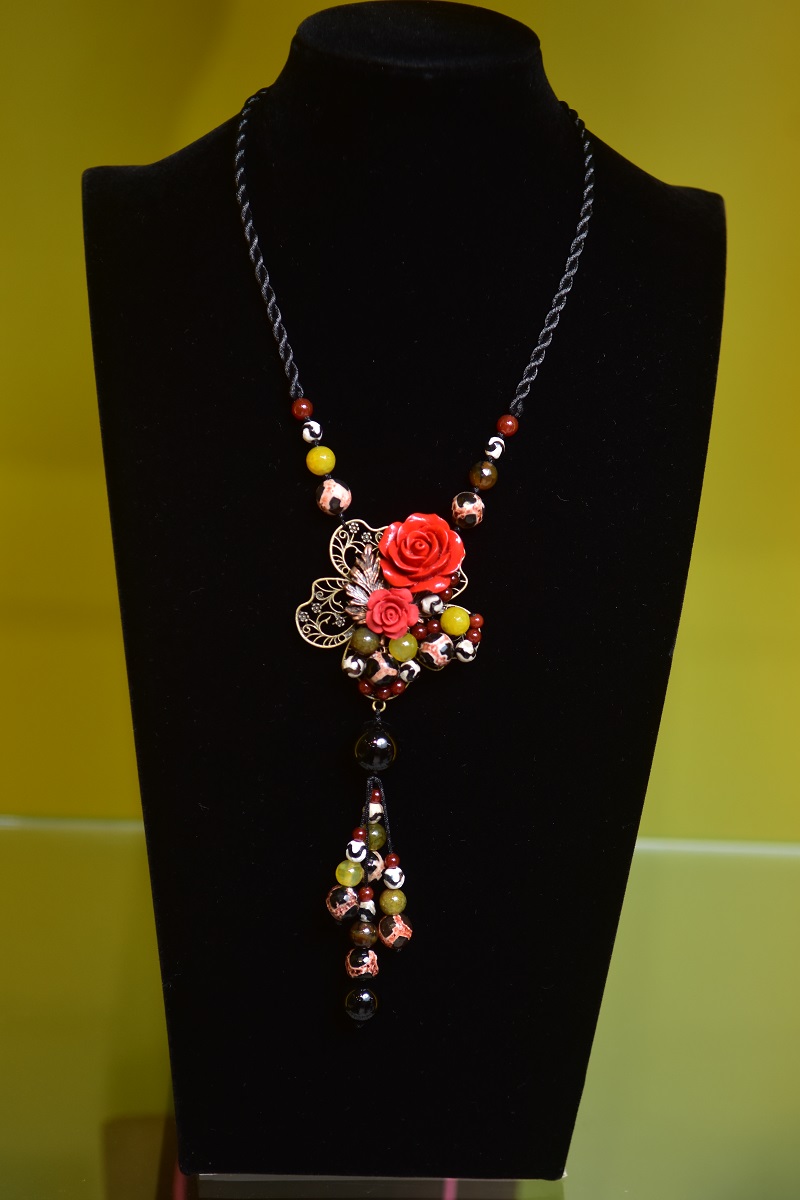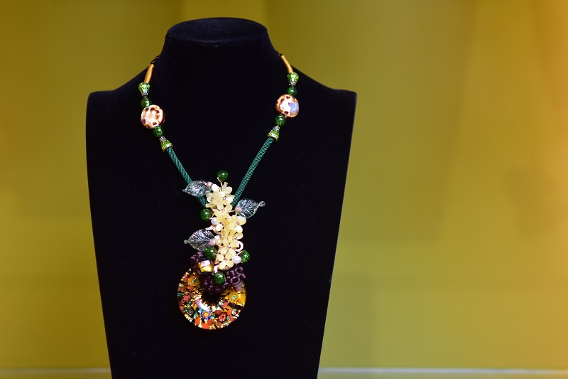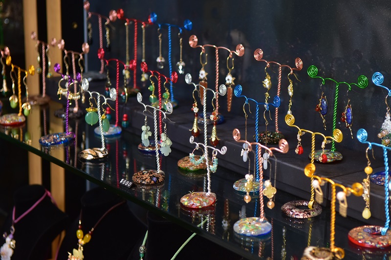 一件件設計感十足、作工精細的飾品,五顏六色的琉璃搭配玉石、珍珠或貝殼,無論是小巧的耳環、手鍊,或是複雜的項鍊,十足文創風,價格卻相當親民,不斷擄獲消費者青睞。