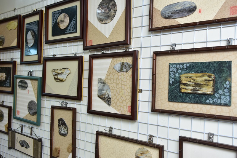 進入樹石店,除了石藝大街常見的各式玉石,還有許多造型獨特的奇木,店面內的陳列,都是呂金戀30多年來的收藏;由於她喜歡賞玩玉石和樹材,樹石店之名就此而來。
